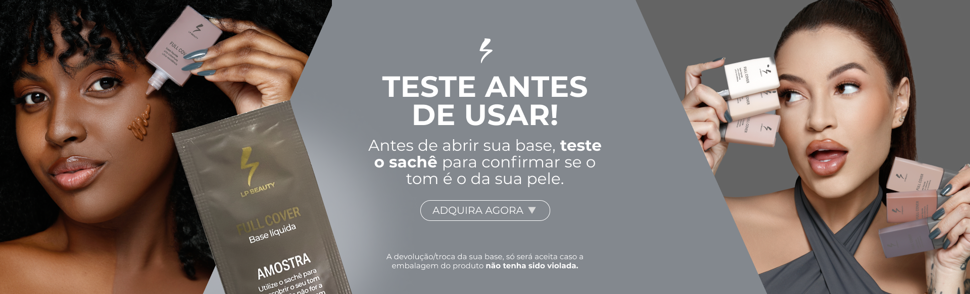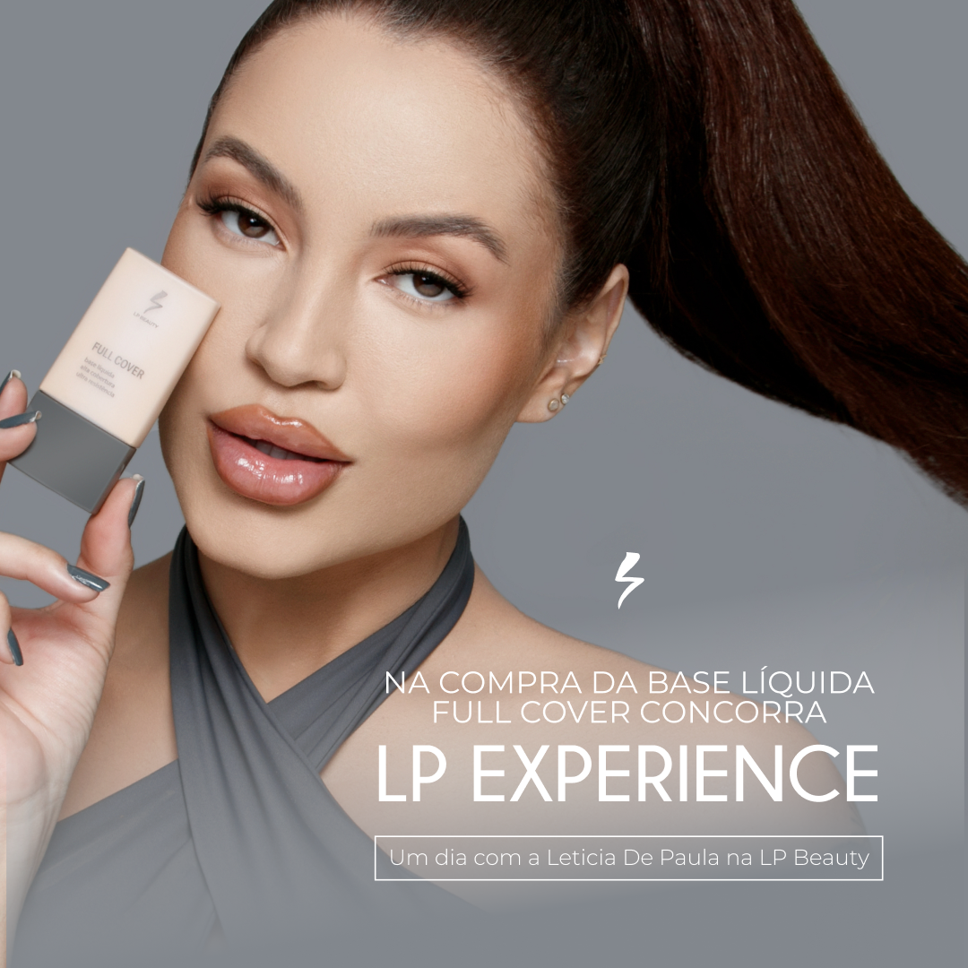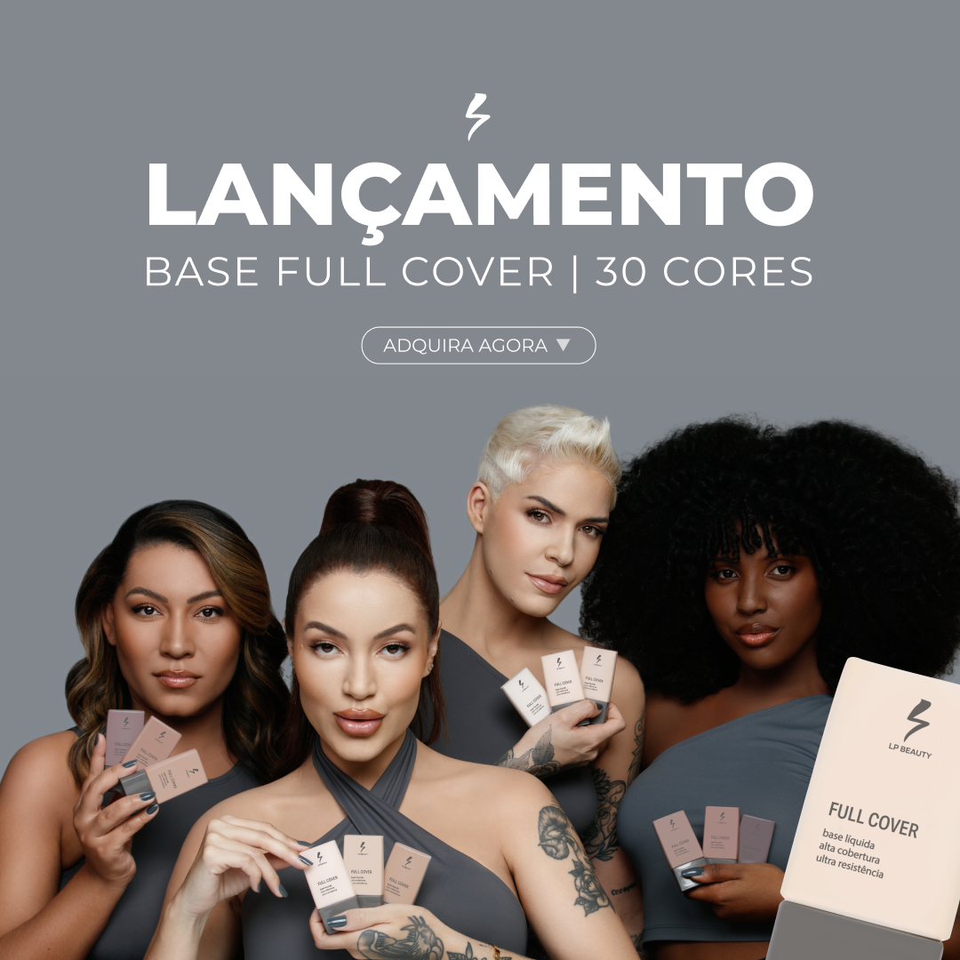 Materiais de lançamento da BASE LÍQUIDA FULL COVER de LP Beauty